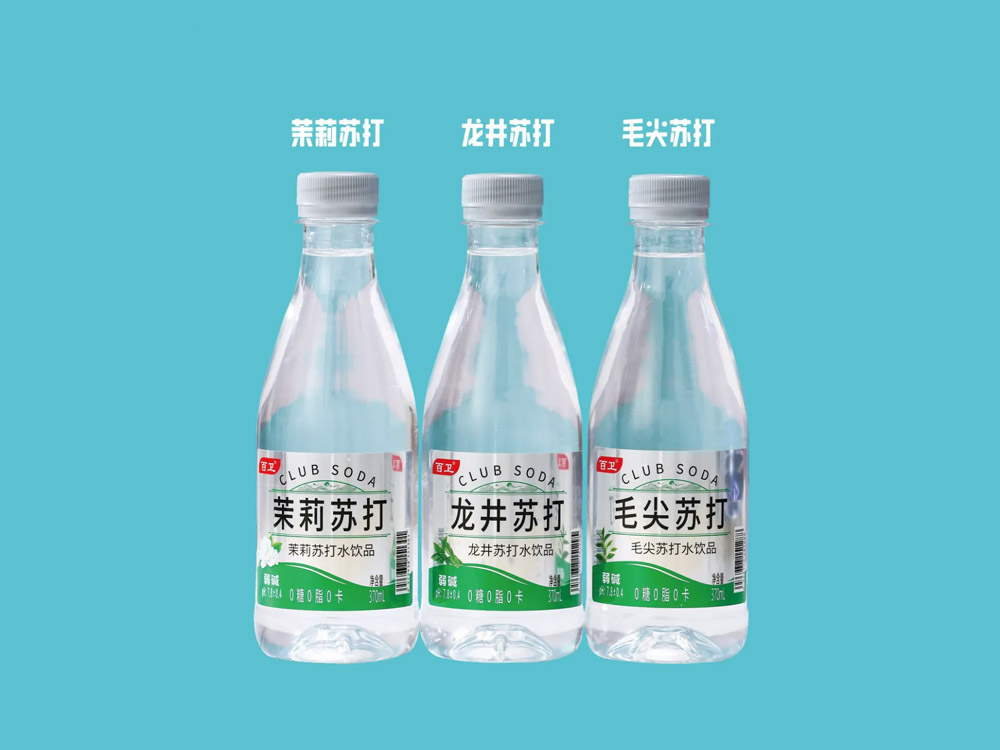 百衛茶蘇打有:茉莉蘇打、龍井蘇打、毛尖蘇打3個口味,百衛茶蘇打水回歸蘇打水的本質,以嚴謹的態度做好品控,云臺山水源,經多層滲透過濾,多道的檢驗程序,口感甘甜、細膩柔滑,飲用既解渴又好喝,完全符合各個年齡群體和追求健康飲品人群的市場定位。產品有370ml、520ml、900ml三個規格,充分滿足各種消費需求。